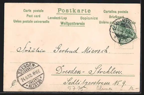 alte Ansichtskarte, gelaufen 1902, guter Zustand