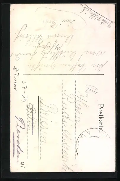 alte Ansichtskarte, gelaufen, Briefmarke entfernt, rückseitig Oberflächenschaden, guter Zustand