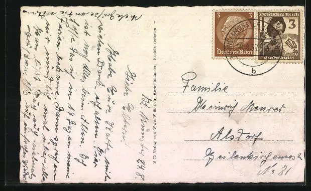 alte Ansichtskarte, gelaufen 1937, guter Zustand