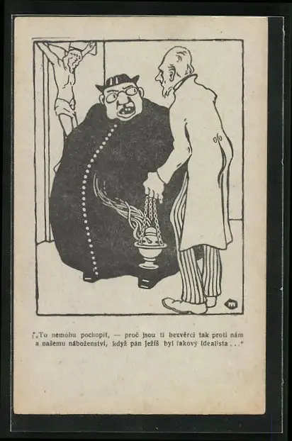 AK Korpulenter Priester, dünner Mann mit Weihrauch