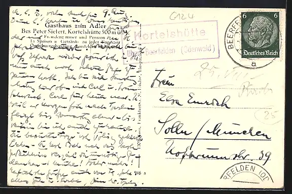 AK Kortelshütte, Teilansicht mit Wohnhäusern und Gasthaus zum Adler