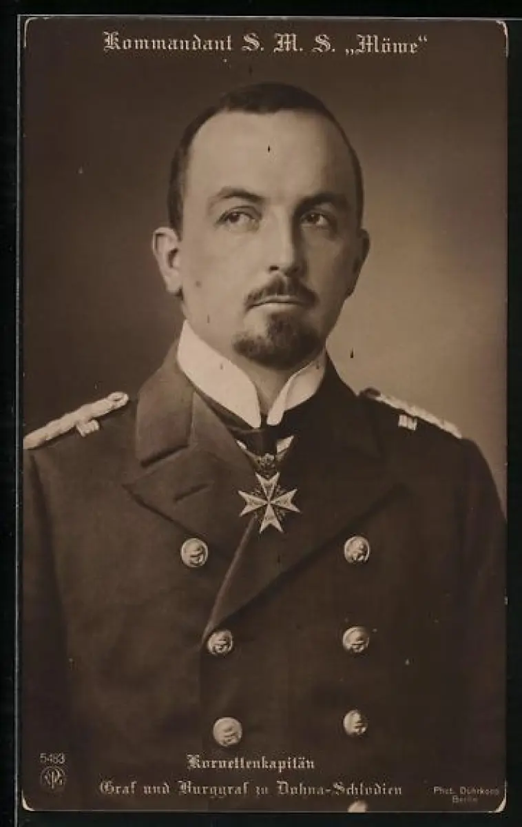 AK Korvettenkapitän u. Kommandant der S.M.S. Möwe Graf u. Burggraf zu Dohna-Schlodien, Portrait in Uniform mit Orden