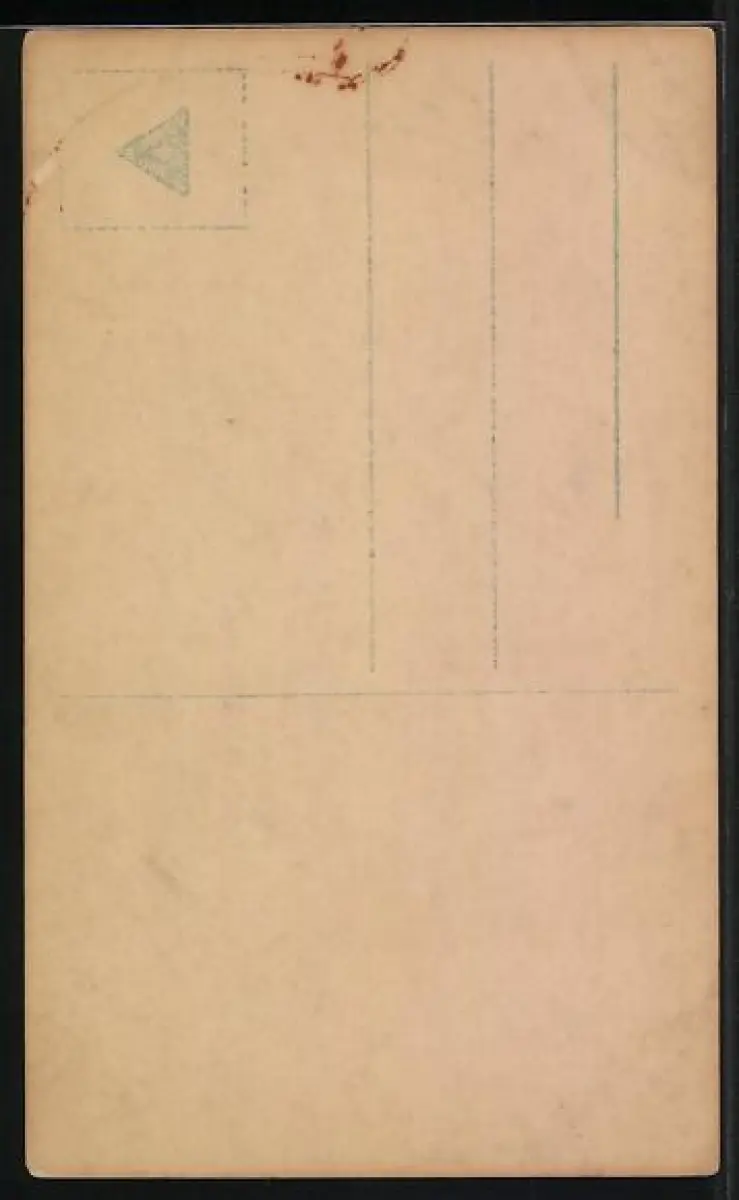 Personenbezogene Daten auf der Rückseite der Karte wurden durch blauen Textmarker unkenntlich gemacht. Die blauen Stellen sind auf die Vorderseite durchgeweicht und wirken sich negativ auf das Postkartenfoto aus