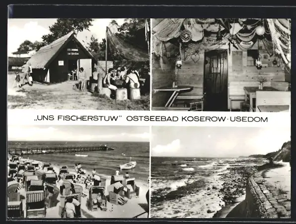 AK Koserow, FDGB-Erholungsheim Uns Fischerstuw, Strand, Streckelbergmauer