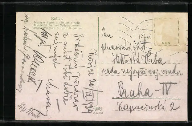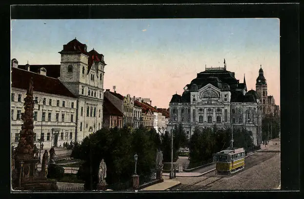 AK Kosice, Nationaltheater und Jesuitenkirche mit Strassenbahn
