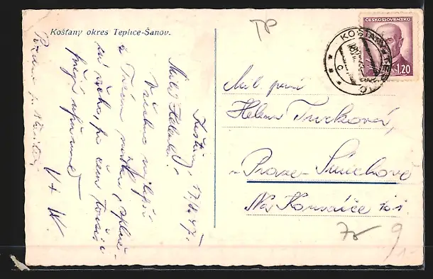 AK Kostany, Kostany okres Teplice-Sanov, Ortsansicht