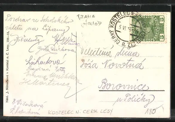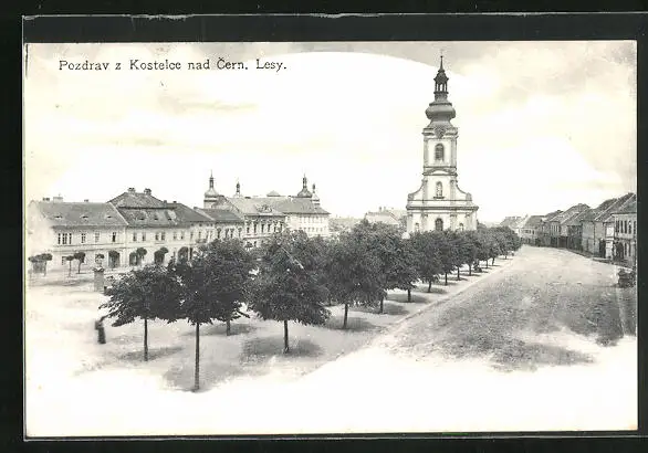 AK Kostelec N. Cern. Lesy, Ortspartie mit Kirche