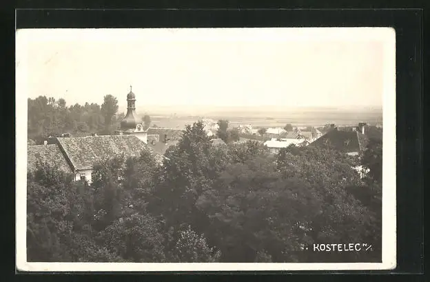AK Kostelec n/L., Ortsansicht aus der Vogelschau
