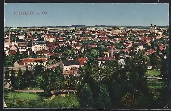 AK Kostelec n. Orl., Ortsansicht aus der Vogelschau