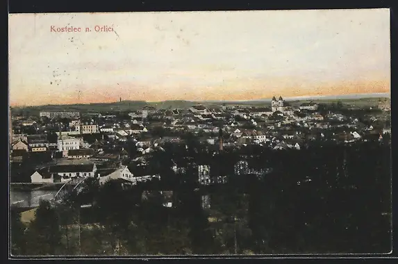 AK Kostelec n. Orlici, Ortsansicht aus der Vogelschau