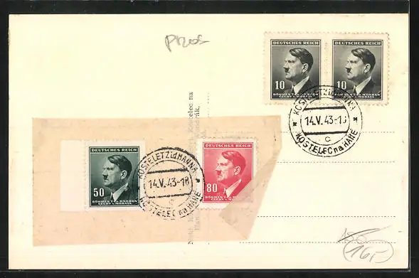 ungelaufen, Briefmarke gestempelt 1943, rückseitig Klebe- und Papierreste, guter Zustand