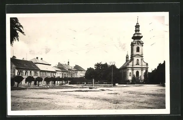 AK Kostelec nad Cernými lesy, Marktplatz mit Kirche