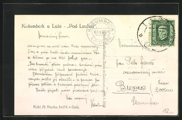 AK Kosumberk u Luze, Hostinec Pod Lindusi, Gasthaus