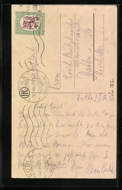 alte Ansichtskarte, gelaufen 1928, minimaler Einriss oben mittig, guter Zustand