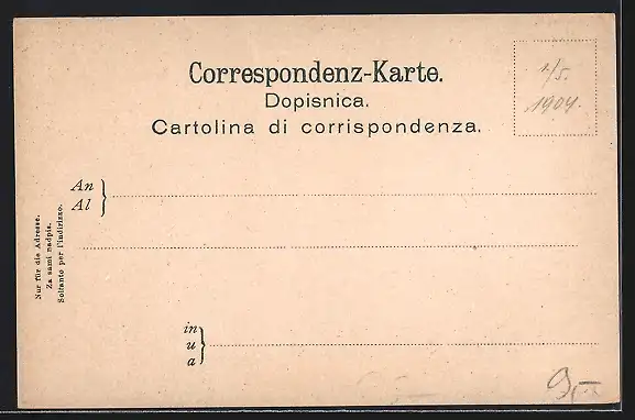 Personenbezogene Daten auf der Rückseite der Karte wurden durch blauen Textmarker unkenntlich gemacht. Die blauen Stellen sind auf die Vorderseite durchgeweicht und wirken sich negativ auf das Postkartenfoto aus