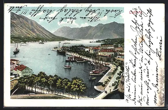 AK Kotor / Cattaro, Ortsansicht mit Hafen, Schiffe