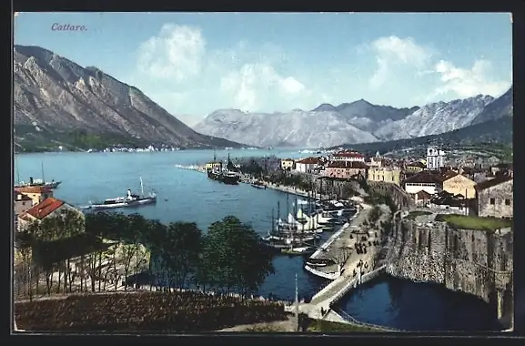 AK Kotor / Cattaro, Panoramablick auf den Küstenort