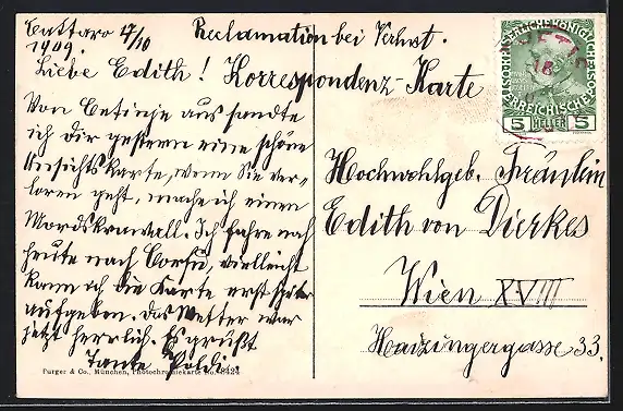 alte Ansichtskarte, gelaufen 1909, guter Zustand