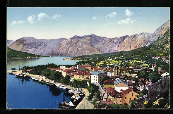 AK Kotor / Cattaro, Teilansicht mit Hafen