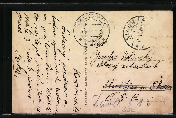 gelaufen 1933, Briefmarke entfernt, guter Zustand