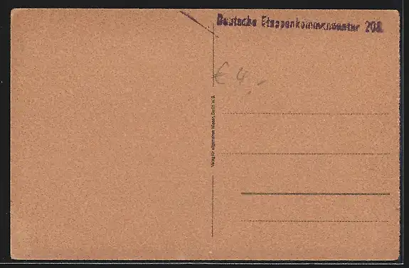 Personenbezogene Daten auf der Rückseite der Karte wurden durch blauen Textmarker unkenntlich gemacht. Die blauen Stellen sind auf die Vorderseite durchgeweicht und wirken sich negativ auf das Postkartenfoto aus
