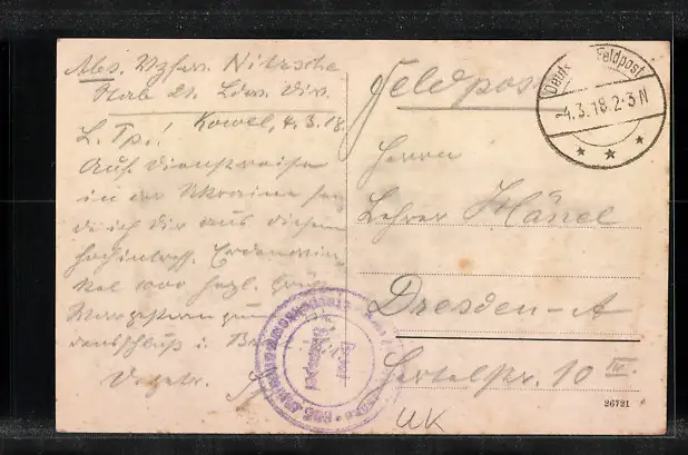 alte Ansichtskarte, gelaufen 1918 als Feldpost, guter Zustand