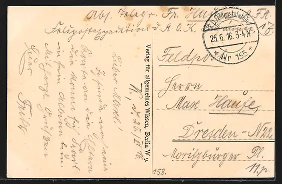 alte Ansichtskarte, gelaufen 1916, guter Zustand