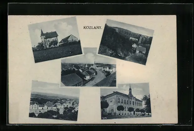 AK Kozlany, Gebäudeansicht, Kirche, Ortspartie