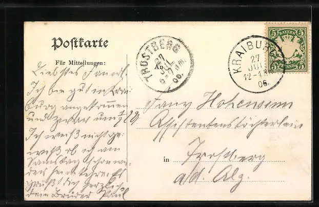 alte Ansichtskarte, gelaufen 1906, guter Zustand