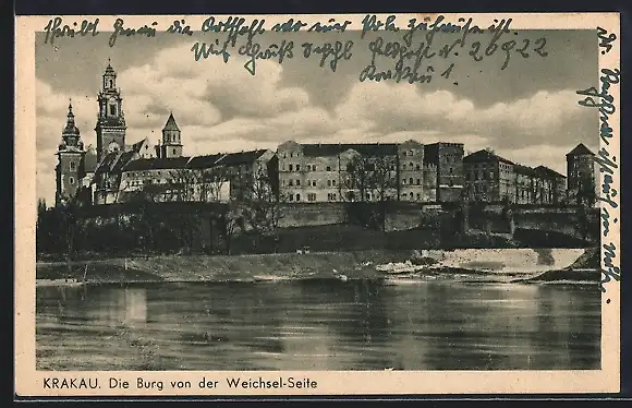 AK Krakau, Burg von der Weichsel-Seite