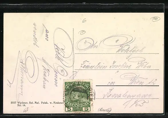 Personenbezogene Daten auf der Rückseite der Karte wurden durch blauen Textmarker unkenntlich gemacht. Die blauen Stellen sind auf die Vorderseite durchgeweicht und wirken sich negativ auf das Postkartenfoto aus