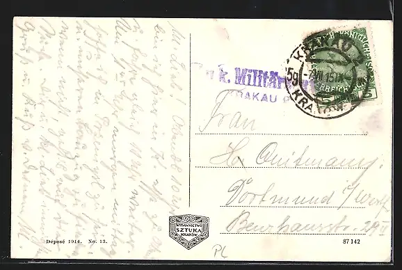 alte Ansichtskarte, gelaufen 1915, Stempelspur, guter Zustand