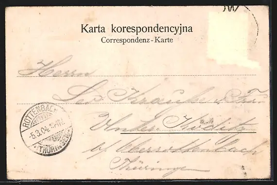 alte Ansichtskarte, gelaufen 1904, Briefmarke entfernt, rückseitig Oberflächenschaden, guter Zustand