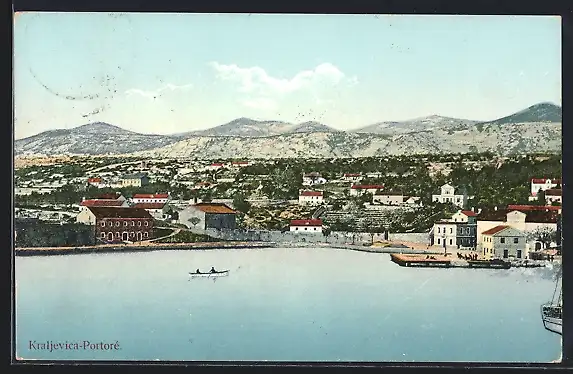 AK Kraljevica-Portoré, Blick vom Meer auf den Ort