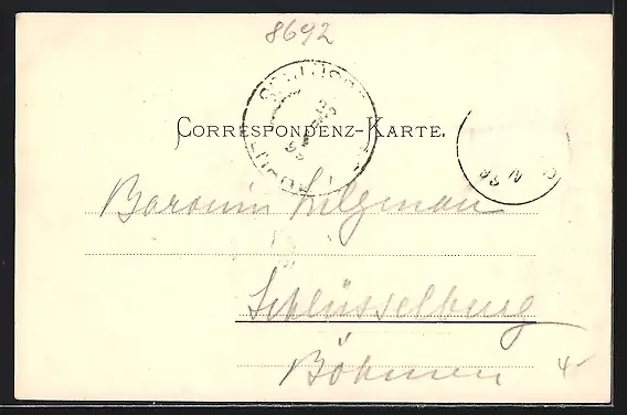 alte Ansichtskarte, gelaufen 1899, Briefmarke entfernt, rückseitig Oberflächenschaden, guter Zustand