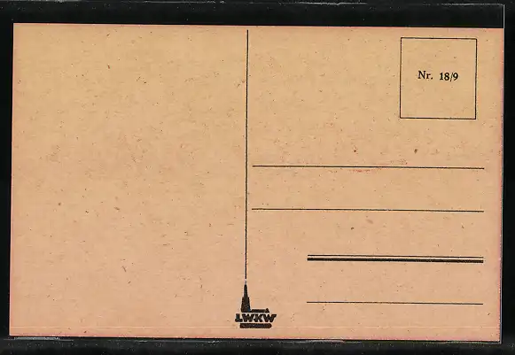 Personenbezogene Daten auf der Rückseite der Karte wurden durch blauen Textmarker unkenntlich gemacht. Die blauen Stellen sind auf die Vorderseite durchgeweicht und wirken sich negativ auf das Postkartenfoto aus