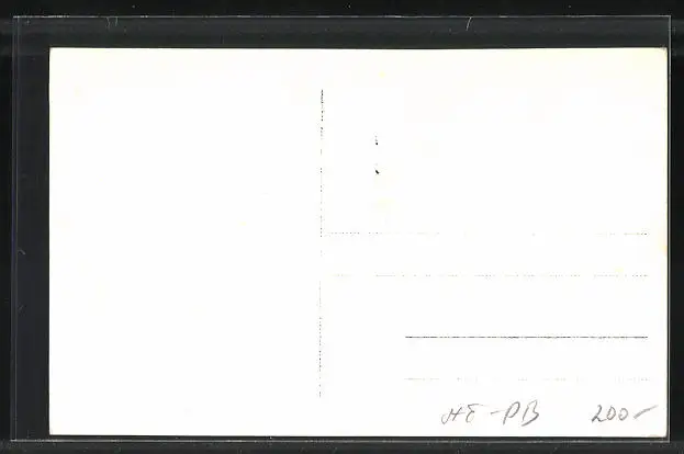 Personenbezogene Daten auf der Rückseite der Karte wurden durch blauen Textmarker unkenntlich gemacht. Die blauen Stellen sind auf die Vorderseite durchgeweicht und wirken sich negativ auf das Postkartenfoto aus