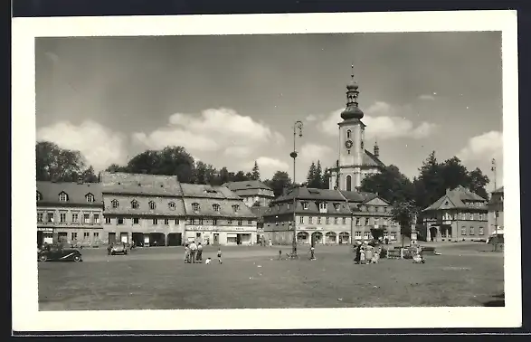 AK Krasna Lipa / Schönlinde, Marktplatz mit Kirche
