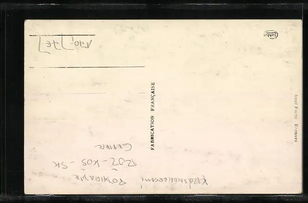 Personenbezogene Daten auf der Rückseite der Karte wurden durch blauen Textmarker unkenntlich gemacht. Die blauen Stellen sind auf die Vorderseite durchgeweicht und wirken sich negativ auf das Postkartenfoto aus