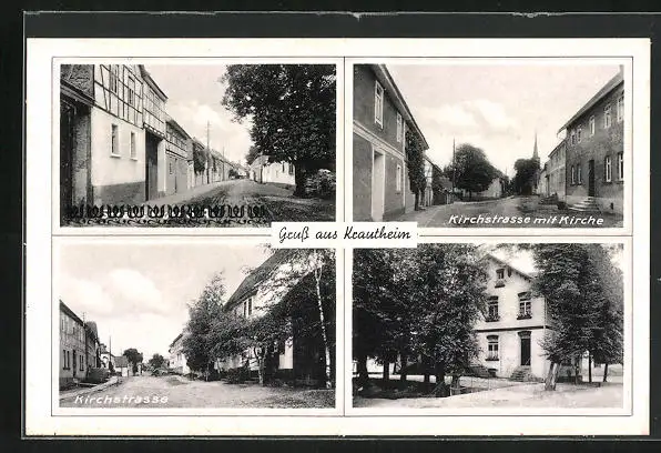 AK Krautheim, Kirchstrasse mit Kirche, Gebäudeansicht, Strassenpartie mit Fachwerkhaus