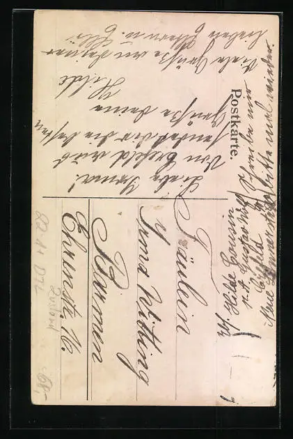alte Ansichtskarte, gelaufen, Briefmarke entfernt, rückseitig Oberflächenschaden, guter Zustand