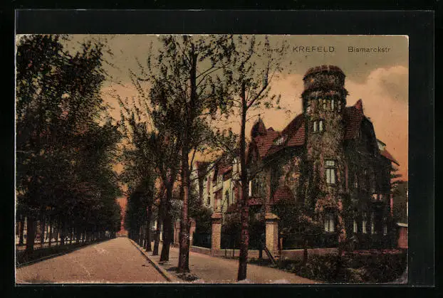 AK Krefeld, Bismarckstrasse mit Bäumen