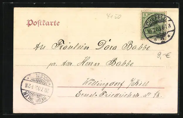 alte Ansichtskarte, gelaufen 1903, Eckknick oben rechts, guter Zustand