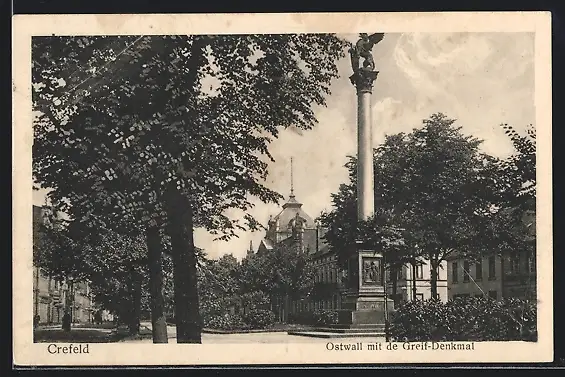 AK Krefeld, Ostwall mit Greif-Denkmal