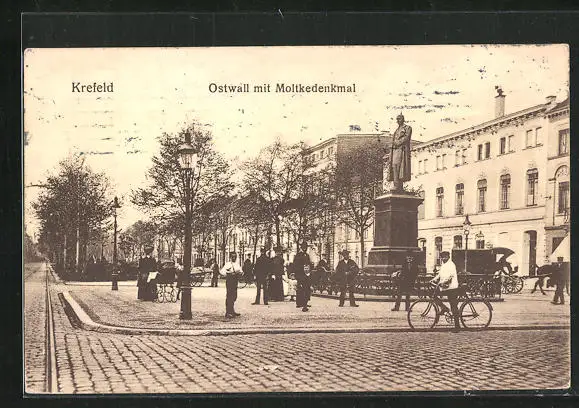 AK Krefeld, Ostwall mit Moltkedenkmal