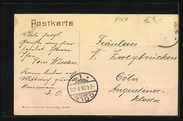 alte Ansichtskarte, gelaufen 1906, Briefmarke entfernt, guter Zustand