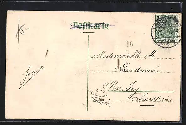 alte Ansichtskarte, gelaufen 1907, Eckknick re. unten, guter Zustand