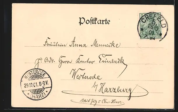alte Ansichtskarte, gelaufen 1901, guter Zustand