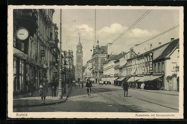 AK Krefeld, Rheinstrasse mit Dionysiuskirche