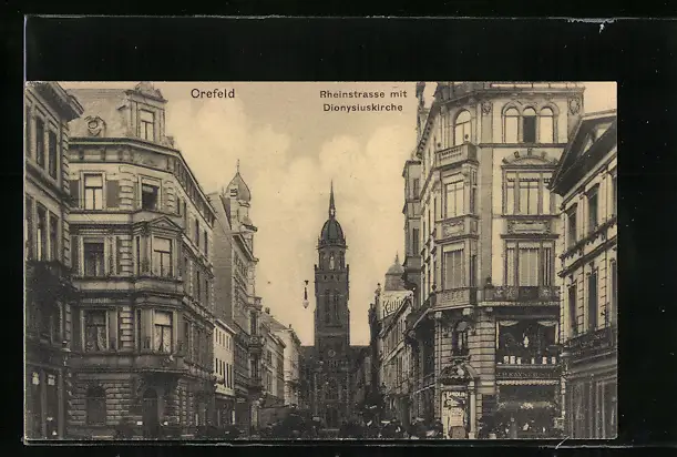 AK Krefeld, Rheinstrasse mit Dionysiuskirche